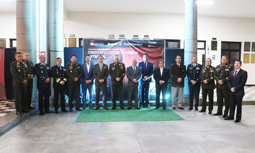 Chorrillos, 02 de octubre de 2025.– En una ceremonia académica realizada en el Centro de Altos Estudios Nacionales (CAEN), se llevó a cabo la clausura del Primer Programa Especializado en Políticas para el Ciberespacio e Inteligencia Artificial, desarrollado en conjunto con el Ministerio de Defefensa y Neurometrics, con el apoyo de Jack D. Gordon Institute for Public Policy y el auspicio de Palo Alto Networks.