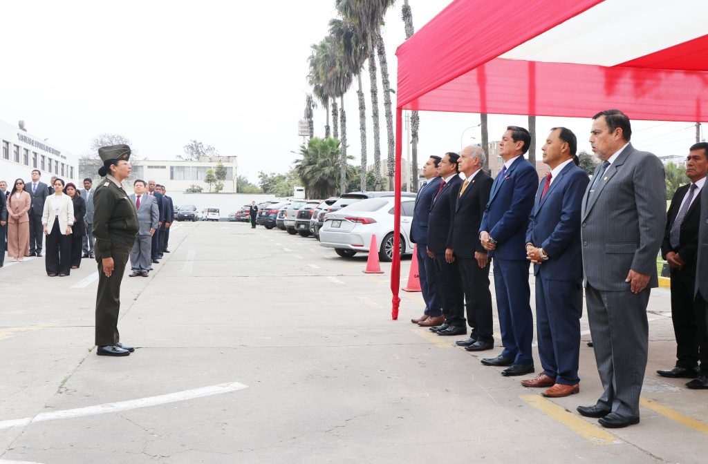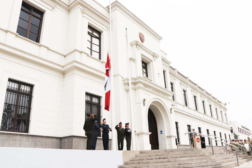 Chorrillos, 9 de octubre de 2025. – El Centro de Altos Estudios Nacionales (CAEN) llevó a cabo esta mañana la tradicional ceremonia de izamiento del sagrado Pabellón Nacional, reafirmando su compromiso con los valores de la Patria y el fortalecimiento de la identidad nacional.
