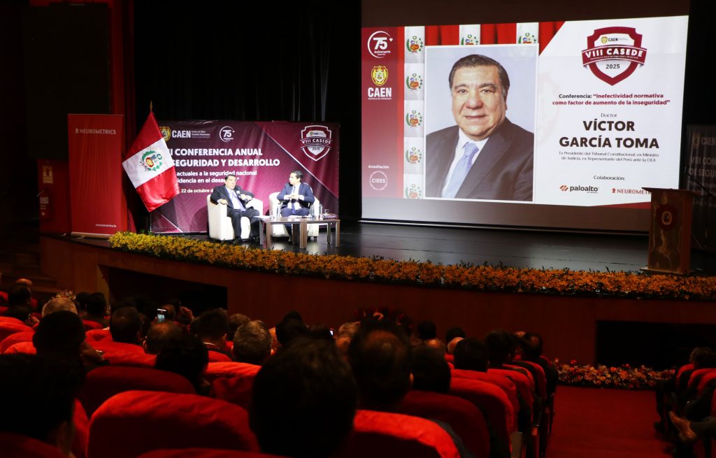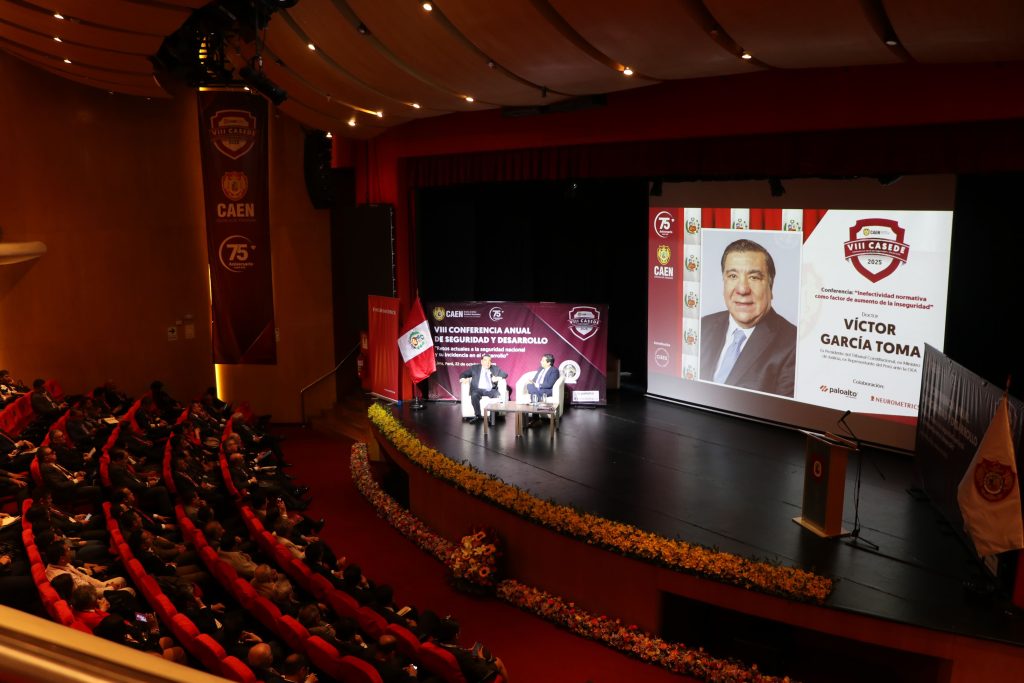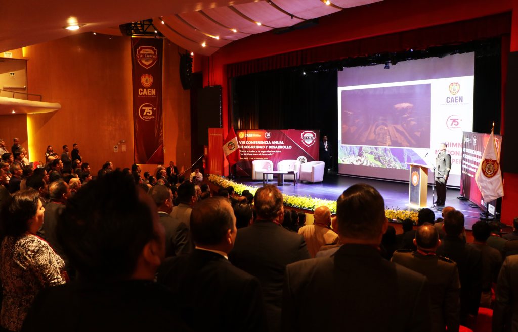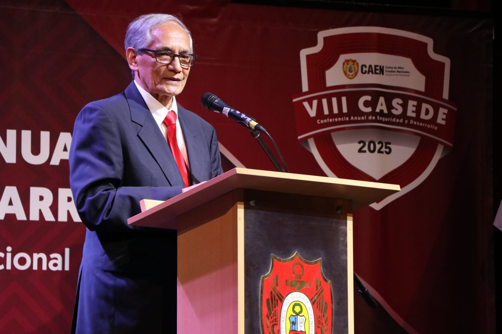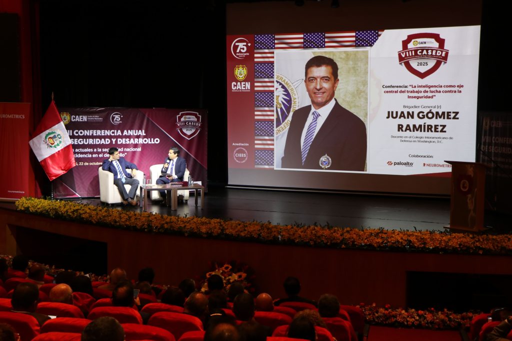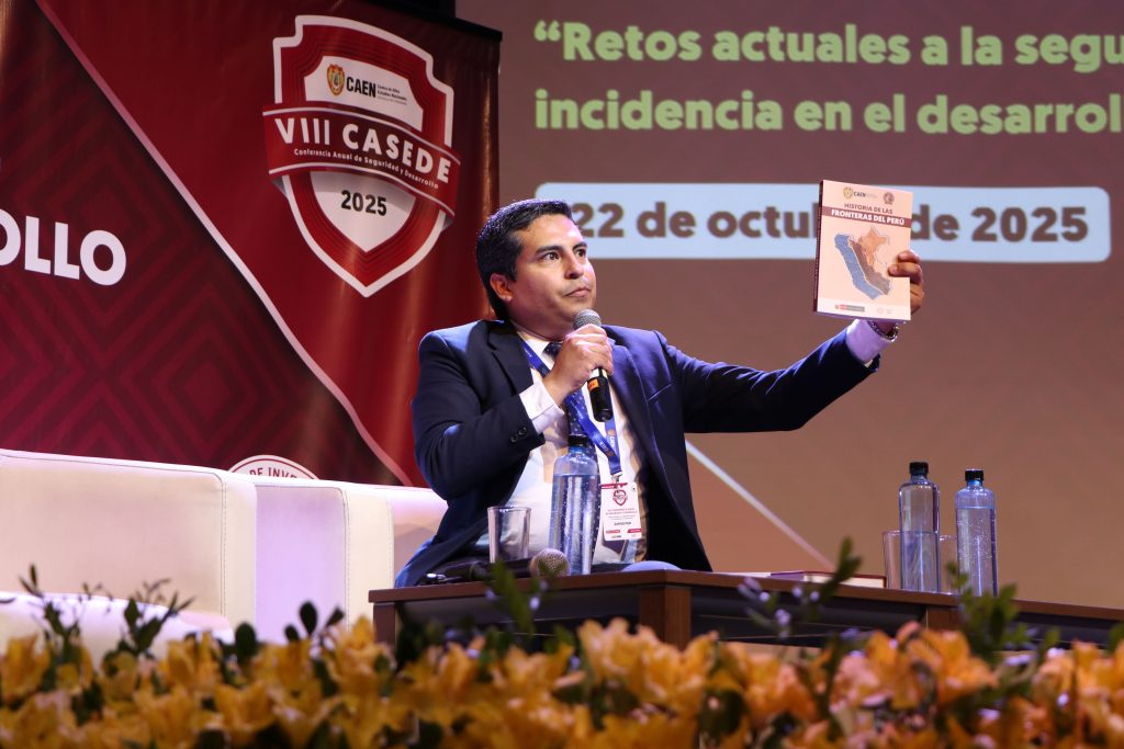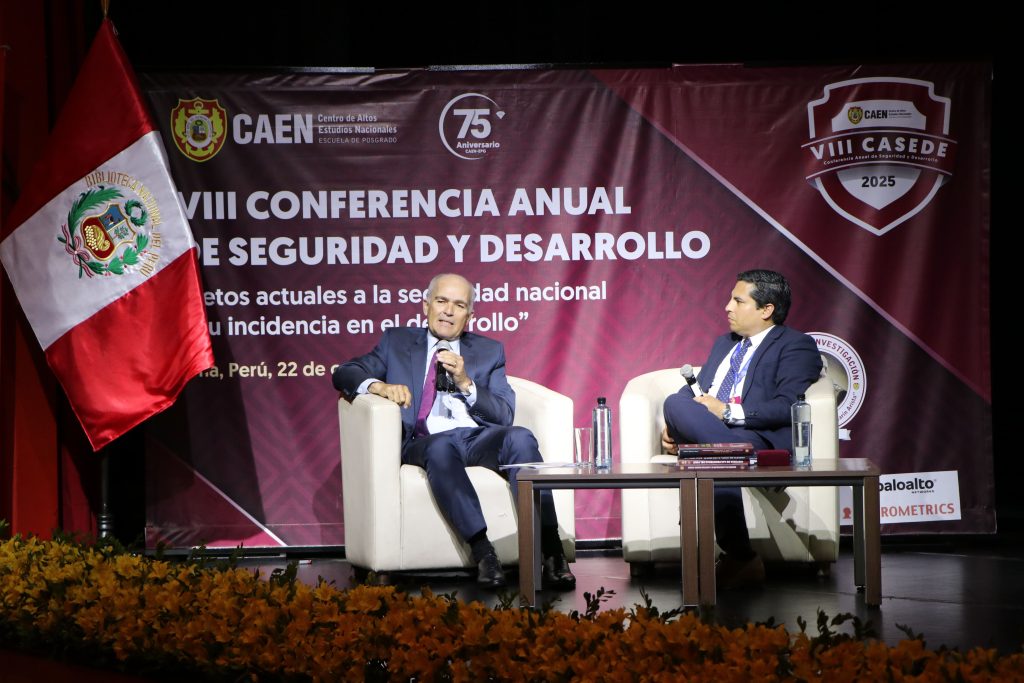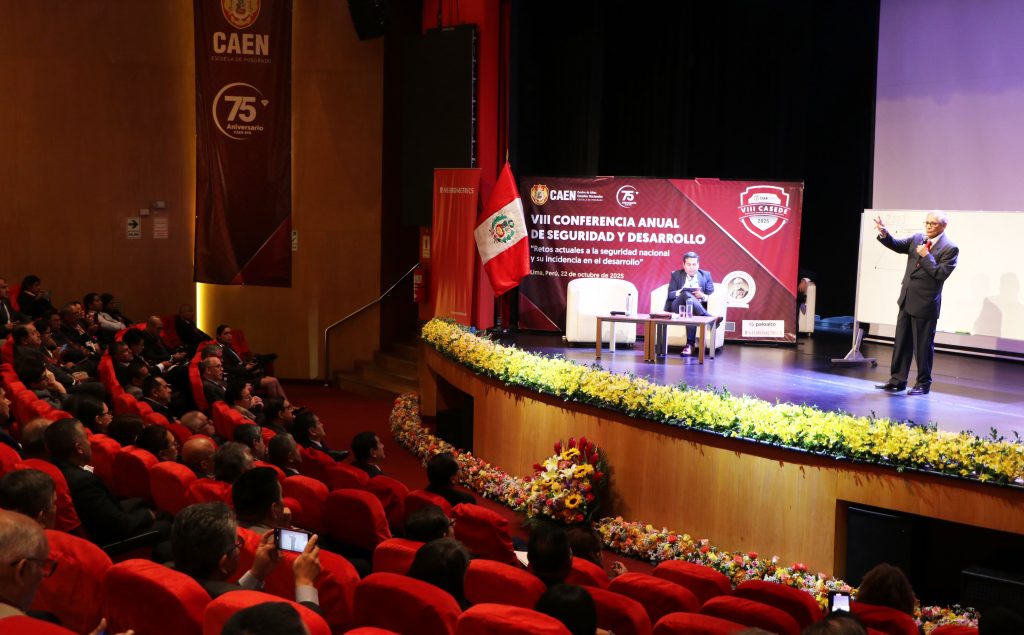 San Borja, 22 de octubre de 2025.– En el marco de las actividades celebratorias por el 75.º aniversario de creación institucional del Centro de Altos Estudios Nacionales (CAEN) y con la asistencia de más de 350 participantes, entre autoridades del sector público y privado, representantes de las Fuerzas Armadas, instituciones académicas, cuerpo diplomático, investigadores, estudiantes y egresados, se llevó a cabo la VIII Conferencia Anual de Seguridad y Desarrollo (CASEDE 2025) en la sede de la Biblioteca Nacional del Perú.
