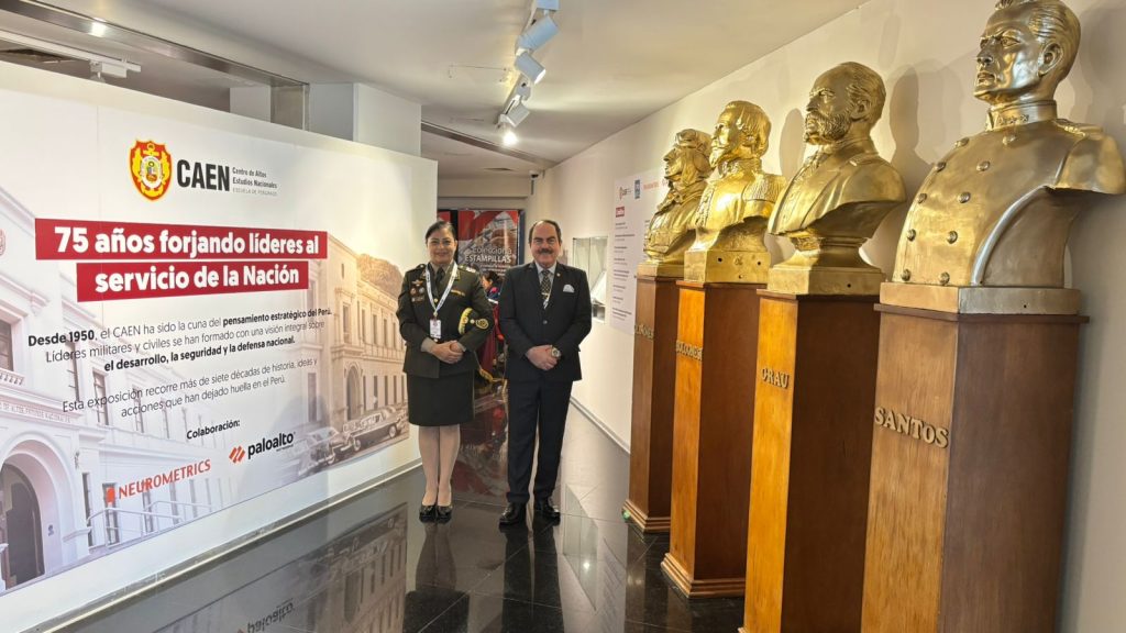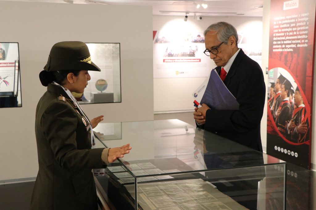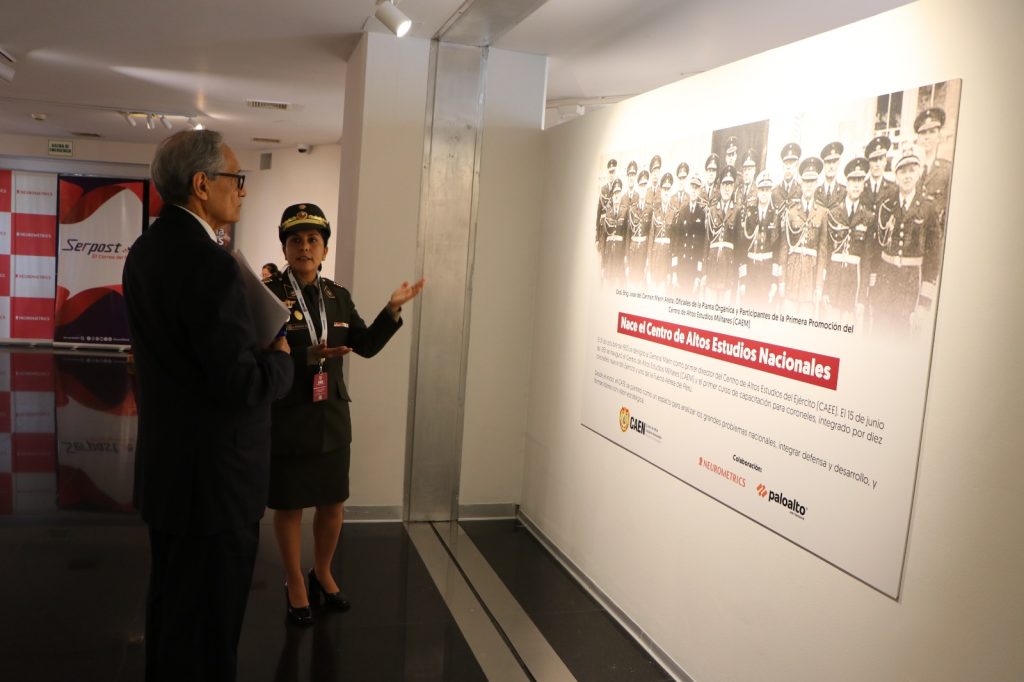 Luego de la culminación del primer módulo de conferencias, en la Sala “Lazo” de la Biblioteca Nacional del Perú, con ocasión de la VIII CASEDE 2025, se presentó la exposición y cronología histórica del CAEN, con una selección de imágenes antiguas y la biografía del General División José del Carmen Marín Arista, en homenaje a su legado institucional y al rol ejemplar en la formación académica y estratégica de la nación.
