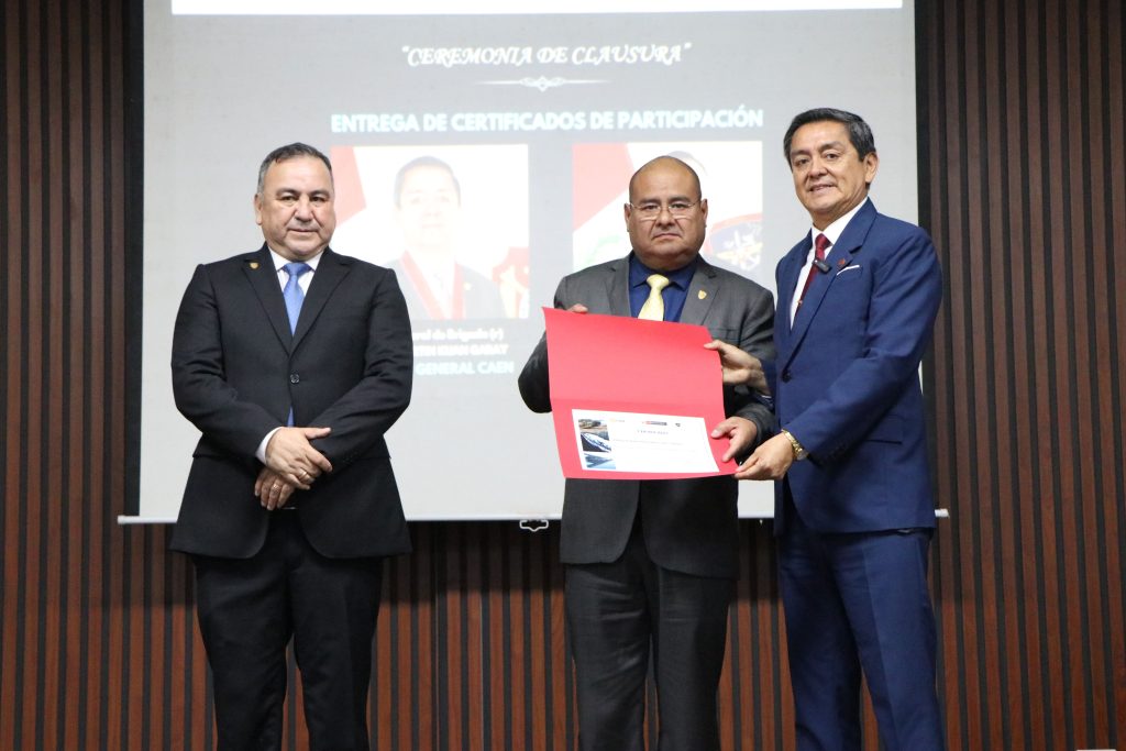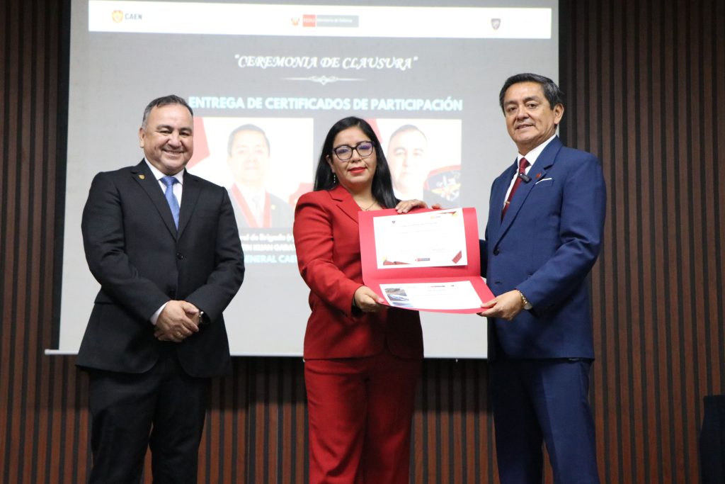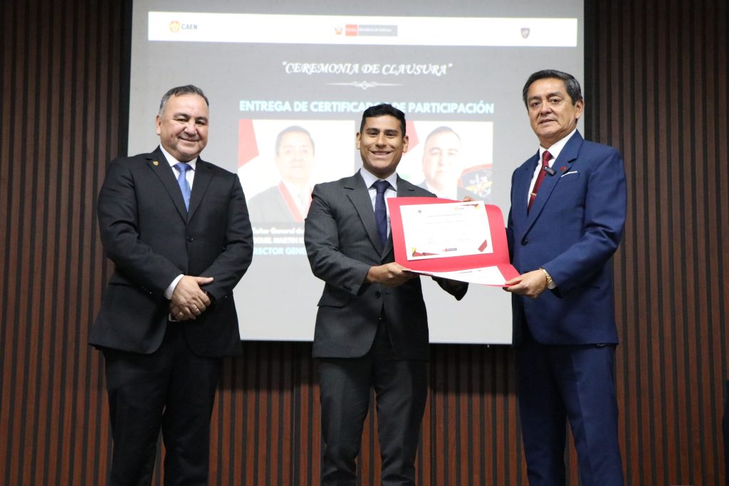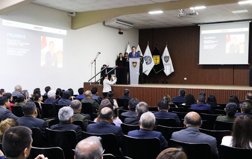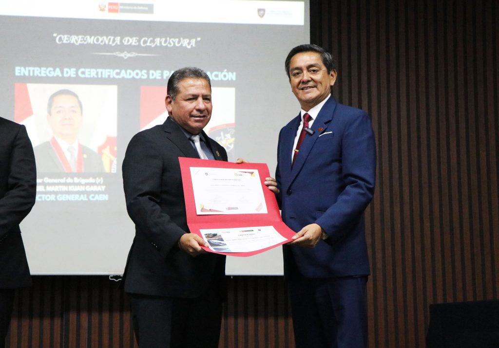 La ceremonia contó con la presencia del Viceministro de Recursos para la Defensa, Adolfo Herrera Orlandini; el Jefe Institucional de la ACFFAA, General de Brigada (r) Erwin Solís Ochoa; el Director General del CAEN, General EP Miguel Kuan Garay; así como distinguidas autoridades civiles y militares.