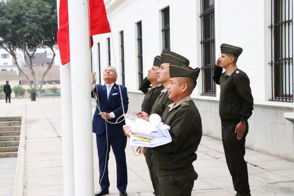 Durante la ceremonia, se procedió al izamiento del Pabellón Nacional, a cargo del Capitán de Navío Víctor Lescano Zevallos, integrante de la quincuagésima promoción del Curso de Desarrollo y Defensa Nacional, acto que simbolizó el compromiso permanente de los miembros del CAEN con los valores de libertad, justicia y soberanía de la Nación.