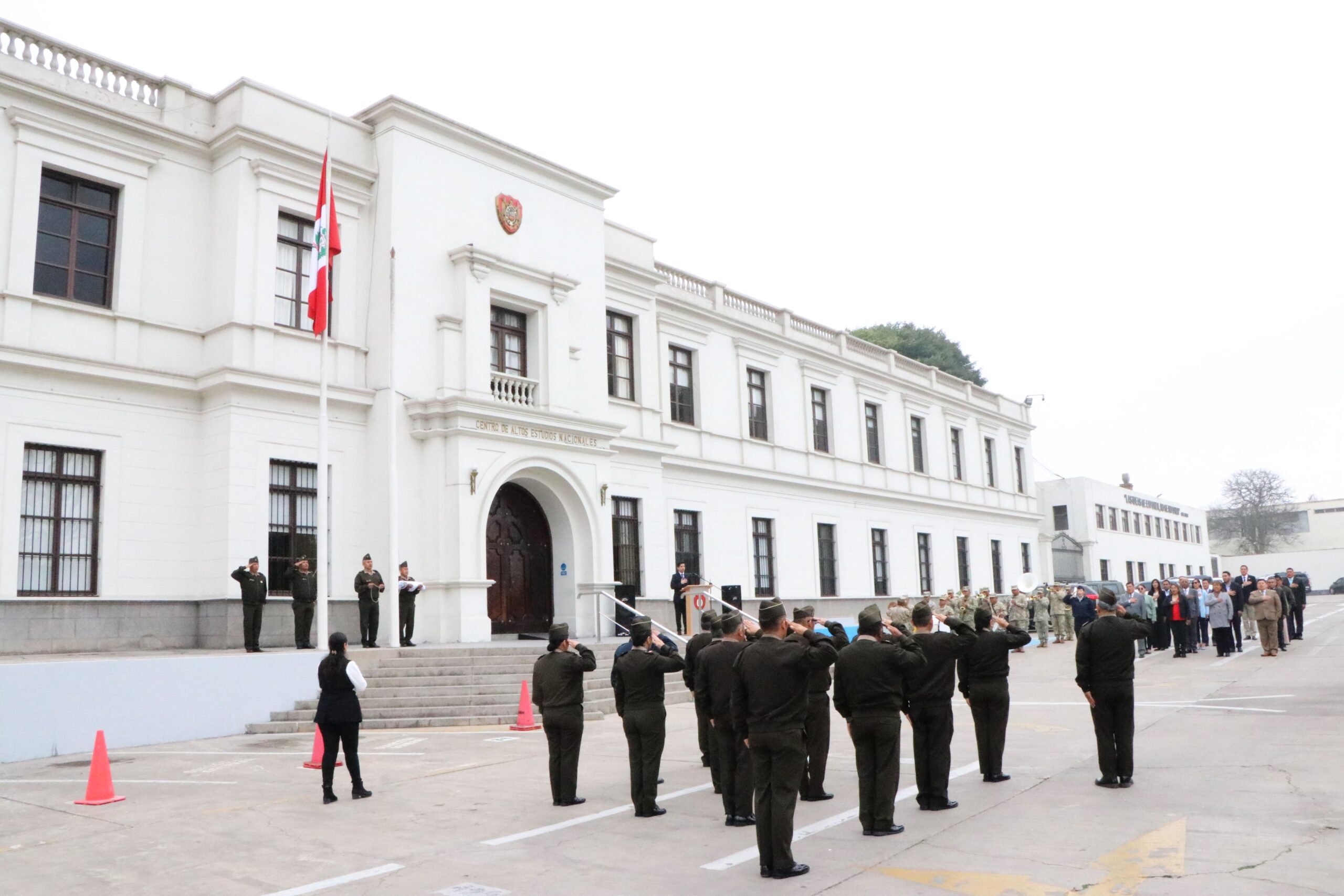 Chorrillos, 12 noviembre de 2025. – En un marco de solemnidad y respeto a los símbolos patrios, el Centro de Altos Estudios Nacionales (CAEN) llevó a cabo la ceremonia de izamiento del Pabellón Nacional.