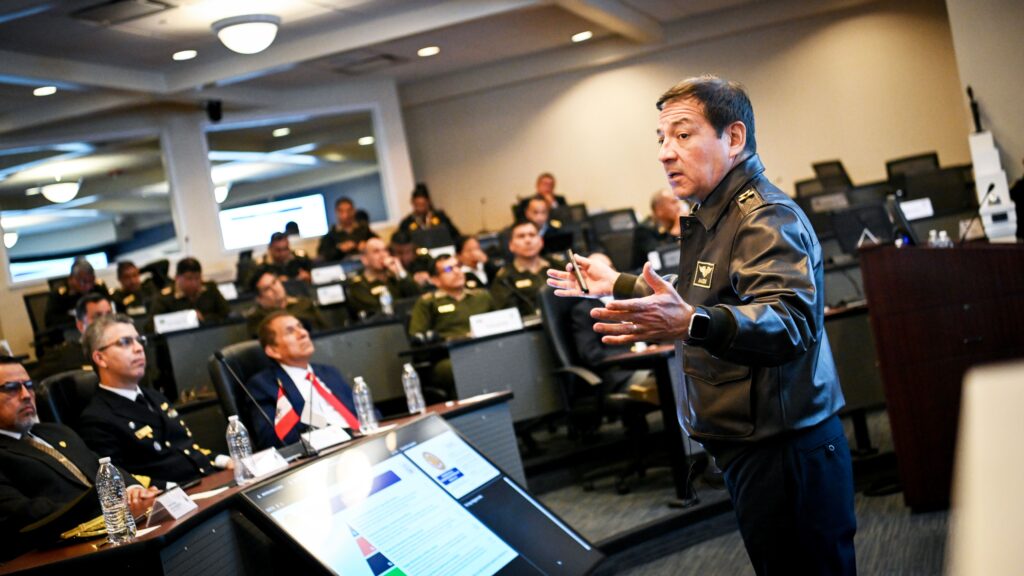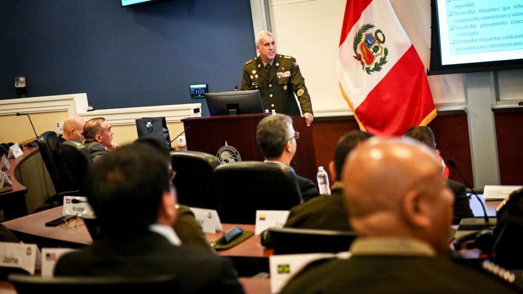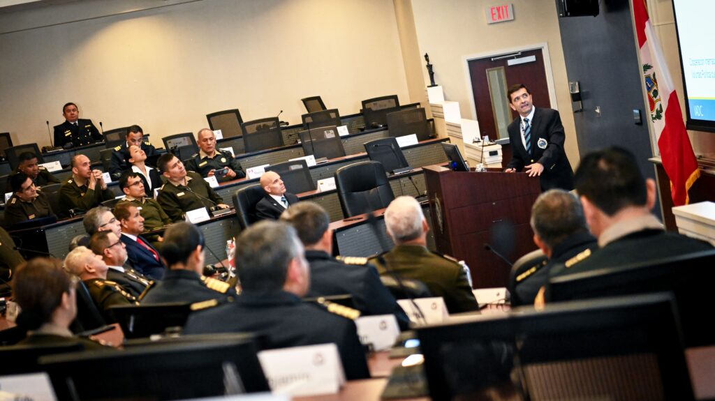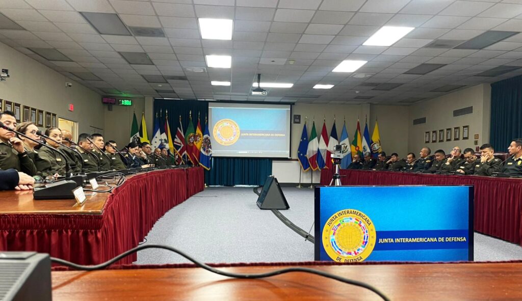 Asimismo, la delegación peruana visitó la sede de la Junta Interamericana de Defensa (JID), donde recibieron una presentación detallada acerca de su misión, estructura, ejes de trabajo y su rol en el fortalecimiento de la seguridad regional. Este encuentro permitió a los estudiantes comprender la importancia de los mecanismos de articulación hemisférica y la cooperación entre los Estados miembros.